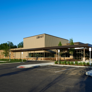 The branch’s children’s area features oversized artwork from the book In the Small, Small Pond by Denise Fleming. Interactive stations encourage children to explore the wonders of the natural world.